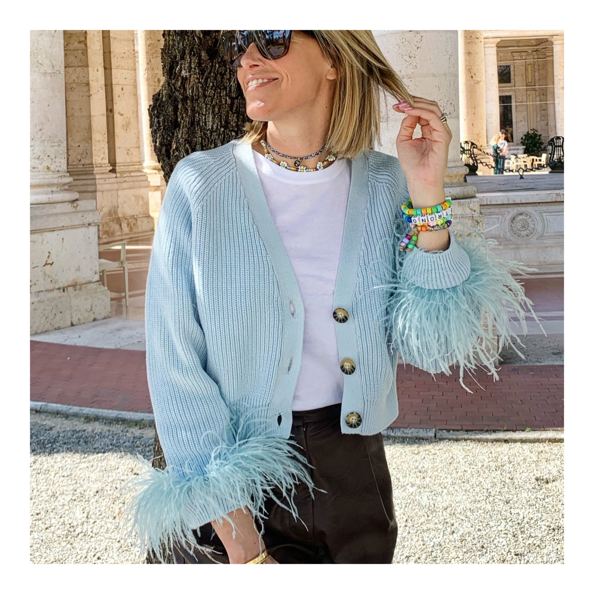 Scrivi nelle note il colore delle piume che preferisci per il tuo cardigan.