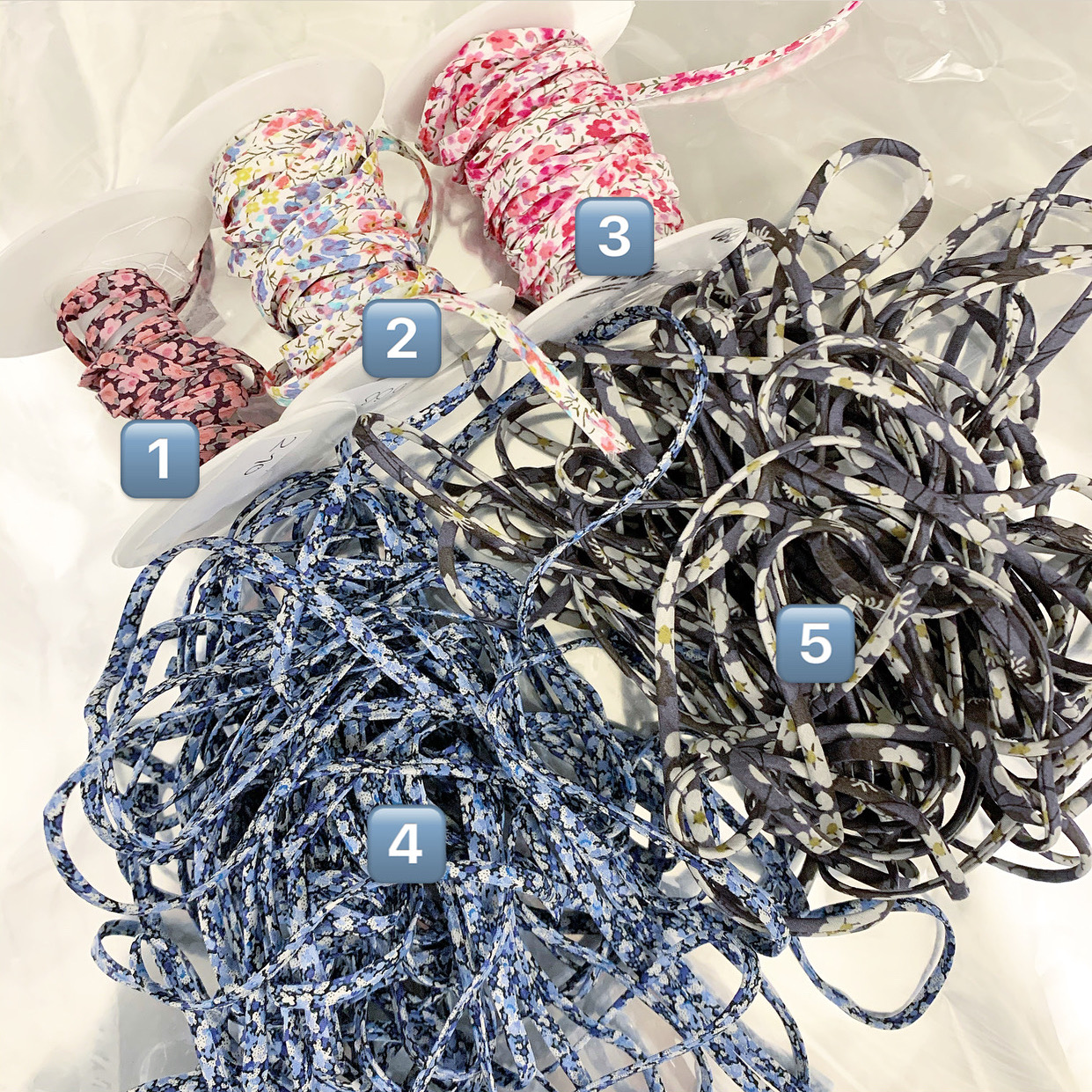 | FANTASIA NASTRINO | 1 BASE NERA/FIORI ROSA, 2 BASE BIANCA FIORI COLORATI, 3 BASE BIANCA FIORI ROSA, 4 FIORI CELESTI, 5 BASE PRUGNA FIORI PANNA |
